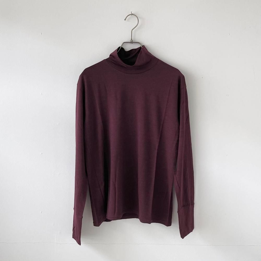 UNIVERSAL TISSU ウォッシャブルウール天竺 ハイネック バーガンディ