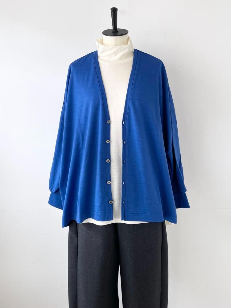 UNIVERSAL TISSU ウォッシャブルウール天竺 ワイドカーディガン ブルー