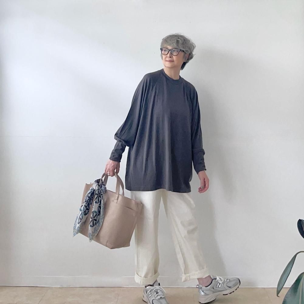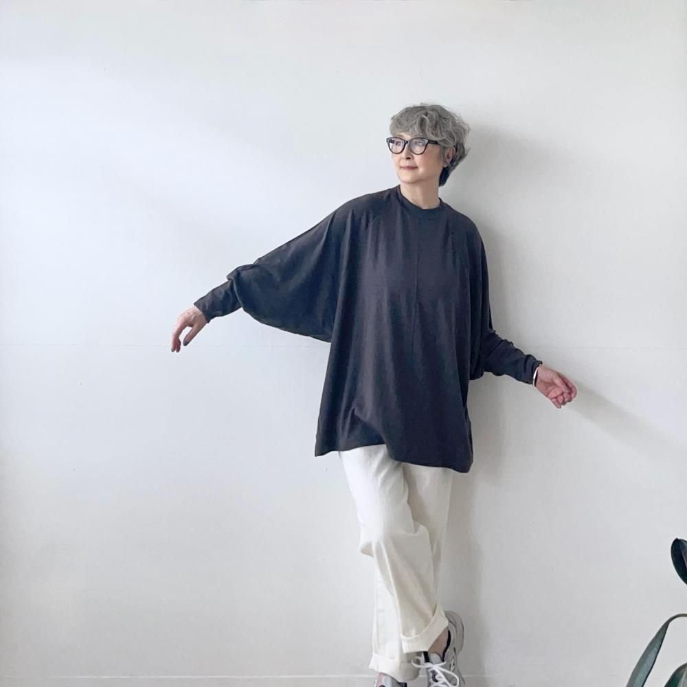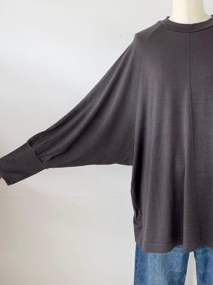 UNIVERSAL TISSU ウォッシャブルウール天竺 ドルマンスリーブプルオーバー チャコール