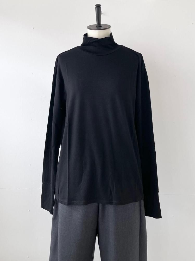 UNIVERSAL TISSU ウォッシャブルウール天竺 ハイネック ブラック