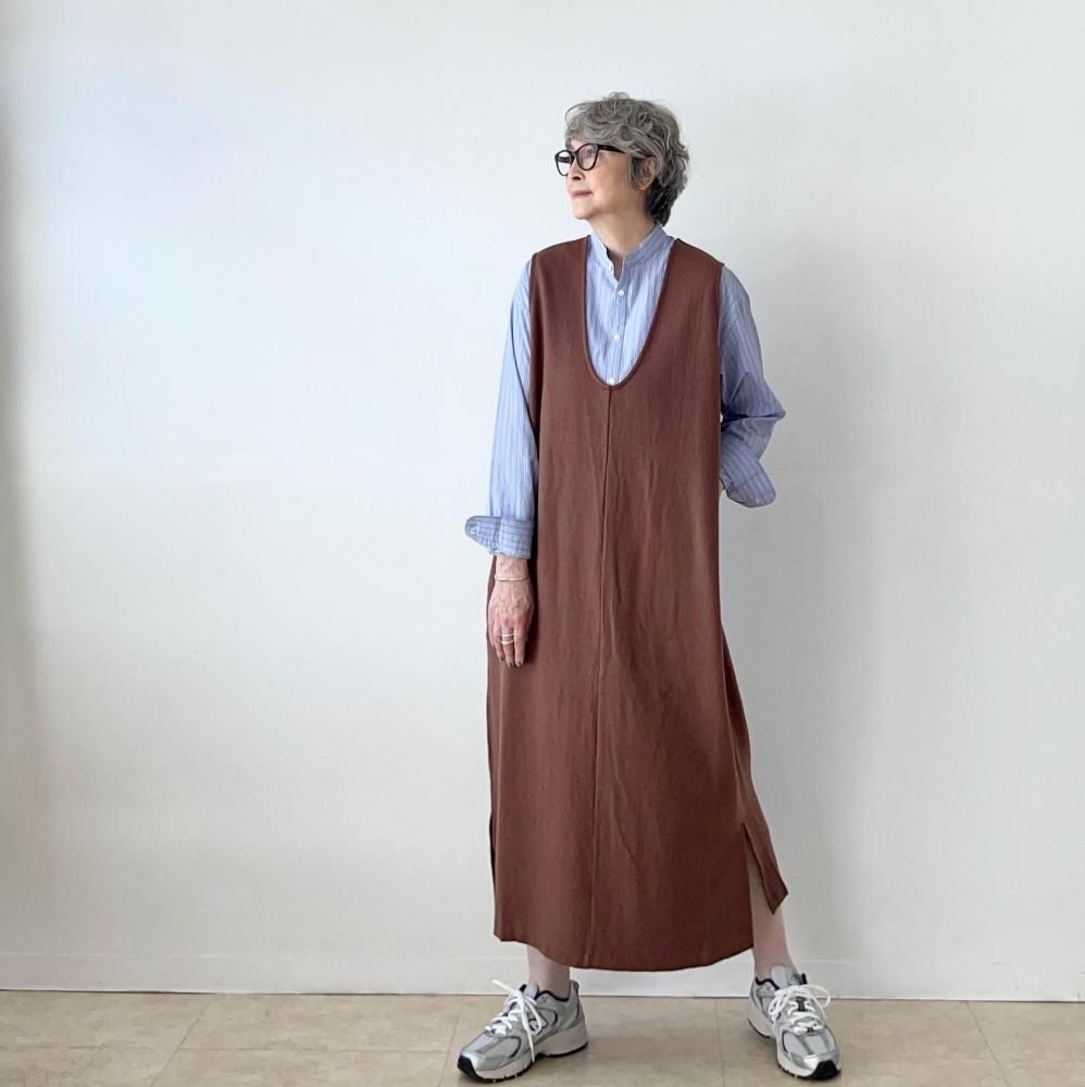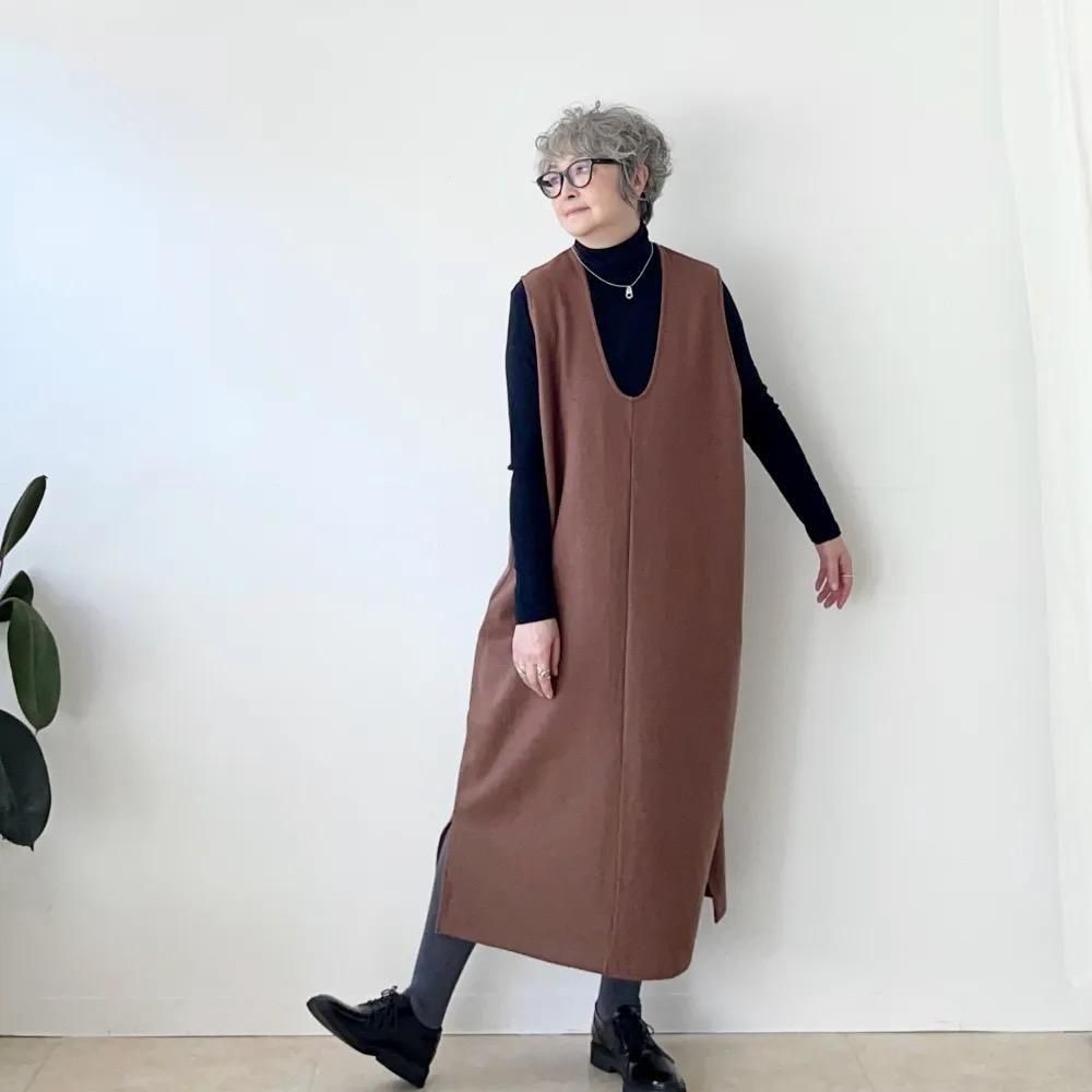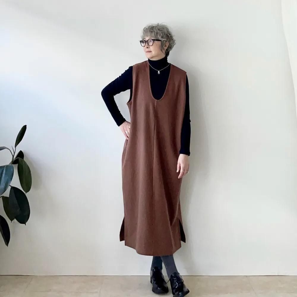 身体を暖かく包んでくれる圧縮ウールのジャンパードレスは