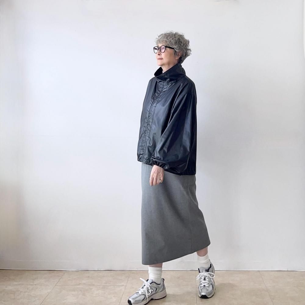 ネック後ろドローコードを引く事でシルエットの変化を楽しめ