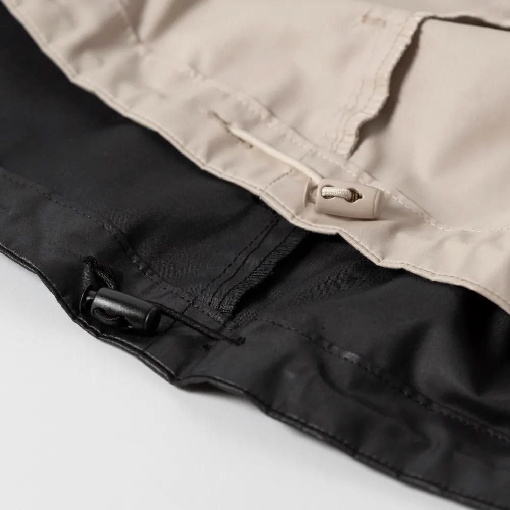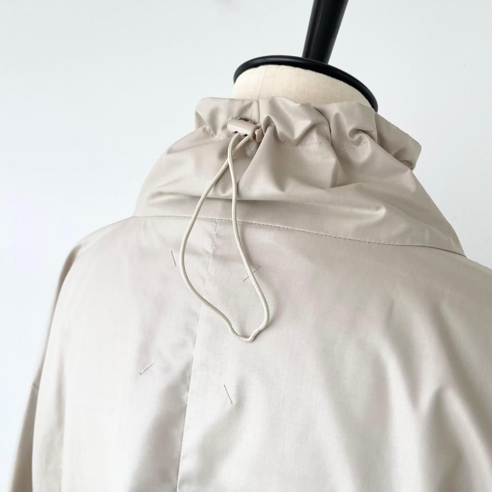 ネック後ろドローコードを引く事でシルエットの変化を楽しめ