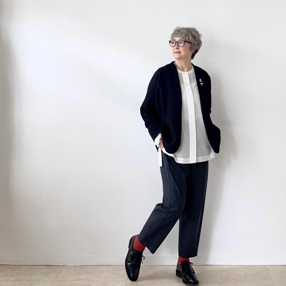 パンツスタイルにもスカートにもスッキリ合わせていただけます