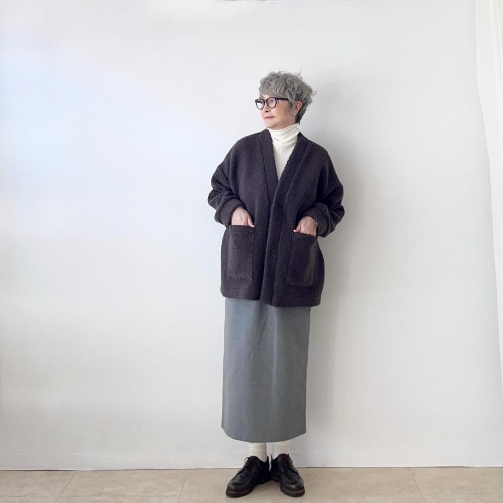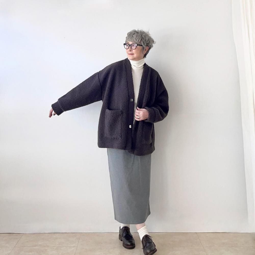 素材の持つ可愛さと暖かみのあるボアのカーディガンは