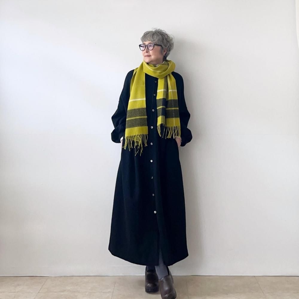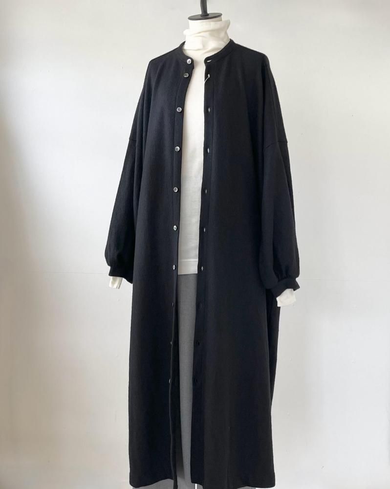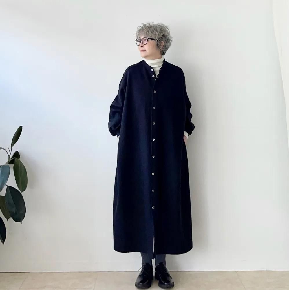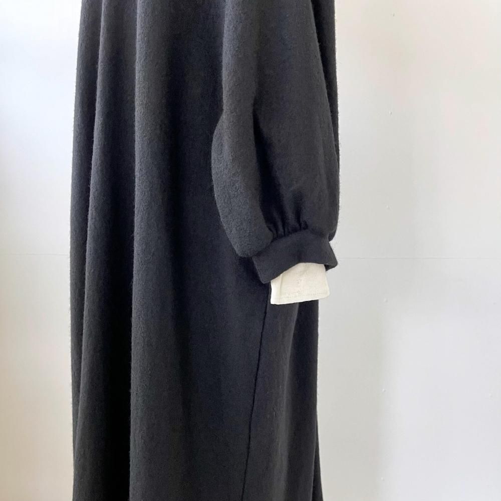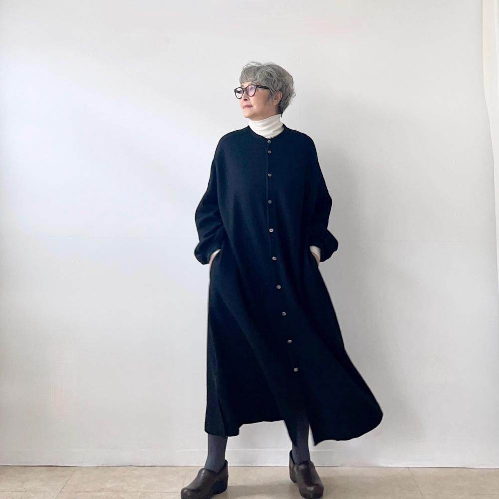 UNIVERSAL TISSU 圧縮ウール バンドカラーワンピース ブラック