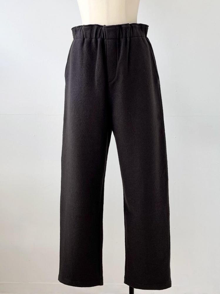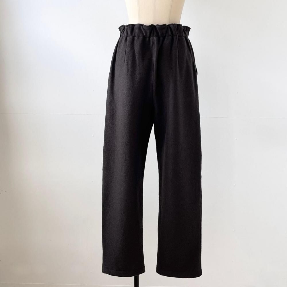 ウエストはゴム仕様、程よいルーズ感があるテーパードシルエットのパンツです