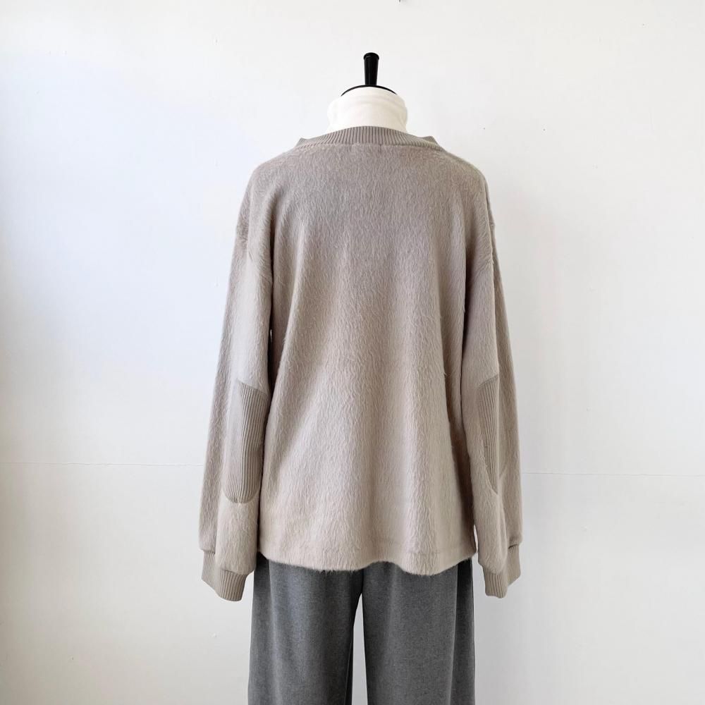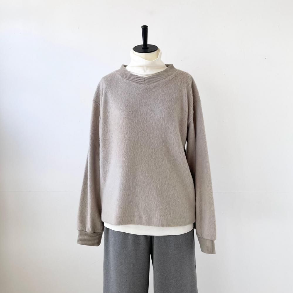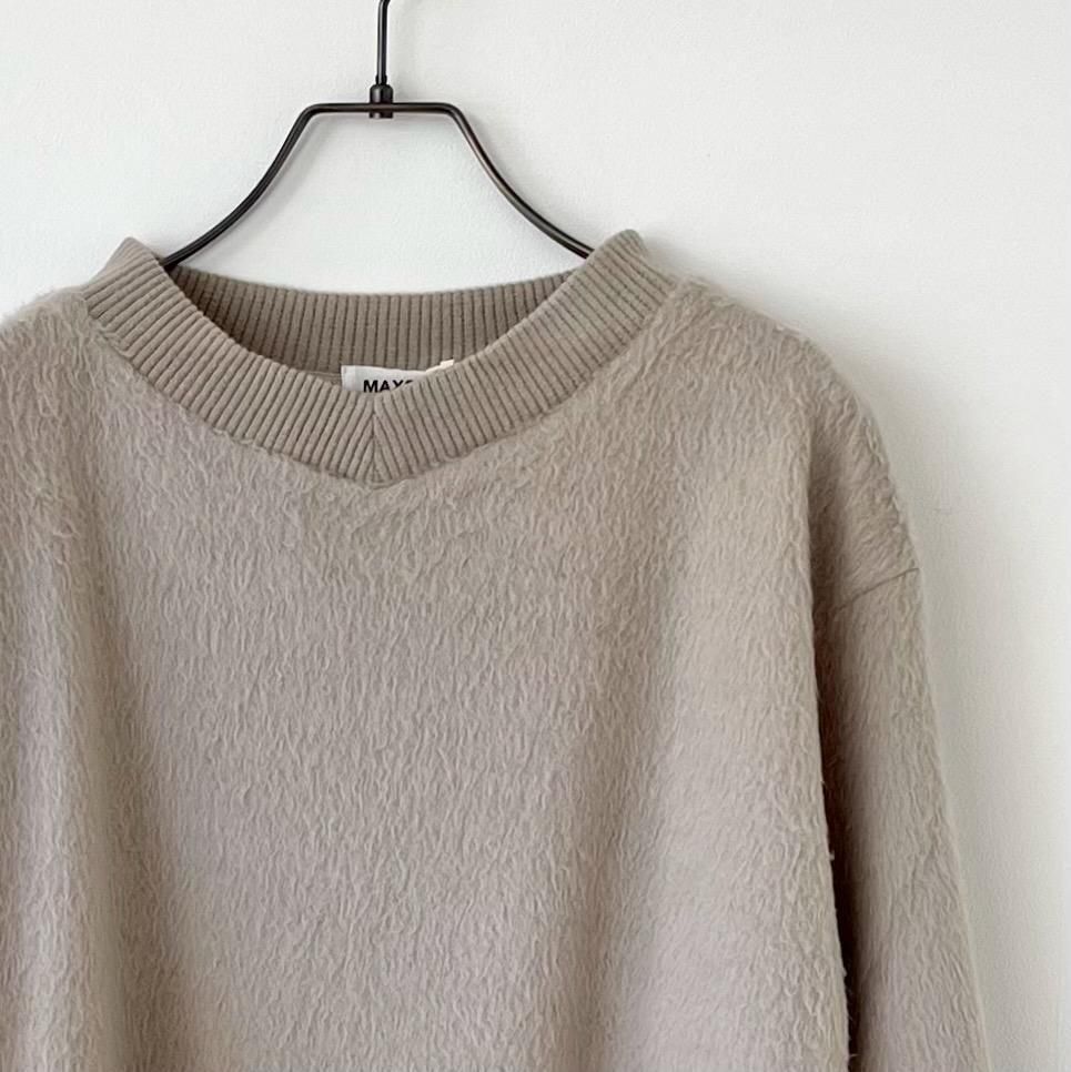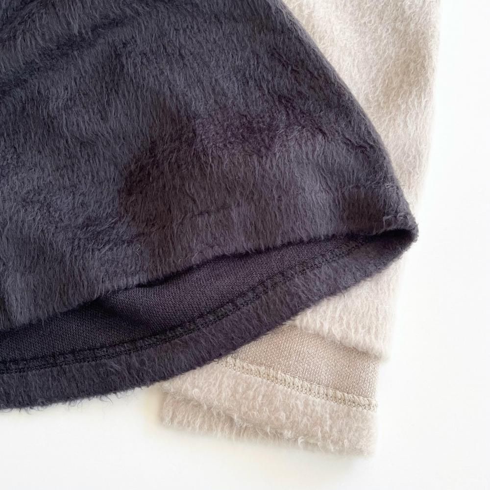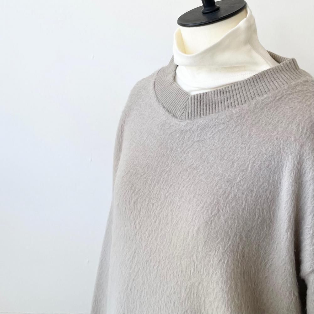 表面に毛足の長い毛羽立った起毛加工を施したシャギーニット