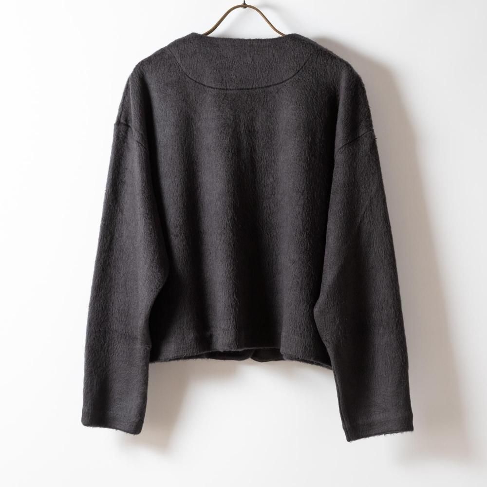 表面に毛足の長い毛羽立った起毛加工を施したシャギーニット